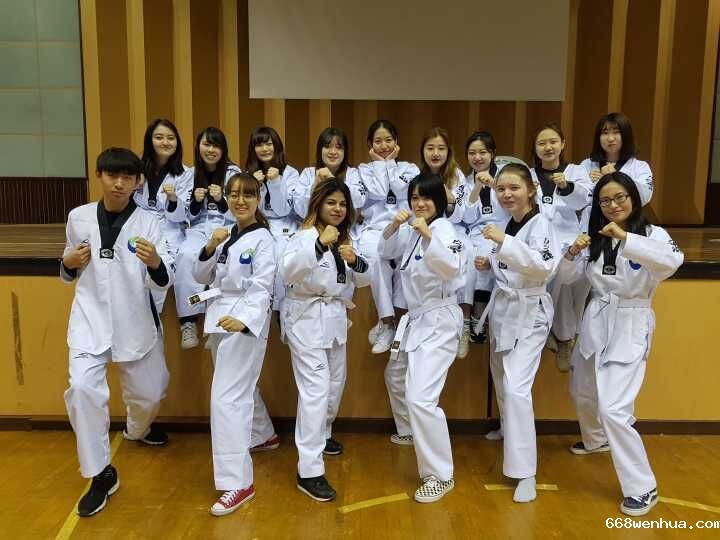 2018届应用韩语专业毕业生在韩国培材大学跆拳道比赛留念