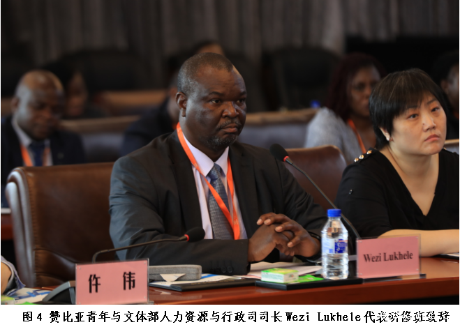 座谈会由王军校长主持。首先,赞比亚青年与文体部人力资源与行政司司长Wezi Lukhele代表研修班致辞。他表示,中赞两国自1964年建交以来,始终保持着良好的双边关系,中国是赞比亚的“全天候朋友”,双方合作覆盖了教育、技能培训与技术转让、基础设施建设等诸多领域。Wezi Lukhele详细介绍了赞比亚的技术教育、职业与创业培训政策,表达了希望在以下领域与中国深化合作:共建卓越中心与推进设备现代化、联合开发重点行业课程、与在赞中资企业合作开展培训与学徒项目、实施培训师技能提升与交流计划,以及搭建数字化技术与创业培训平台。他坚信,本次研修班学员将成为推动赞比亚国家发展的重要力量,并持续助力深化两国合作。