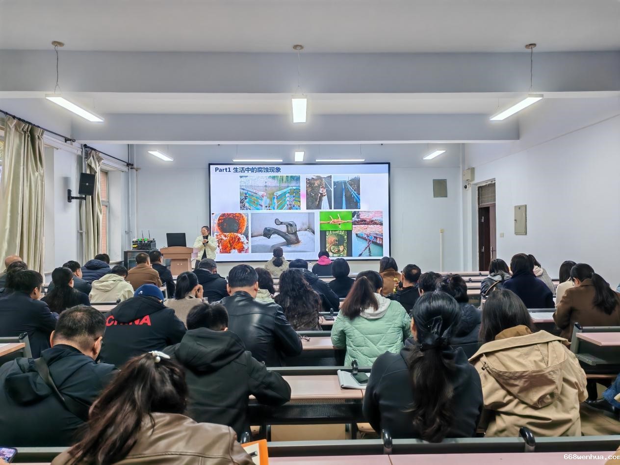 机电学院王冬梅、杨丽和刘喆三位博士分别从“晶体材料科普及激光晶体技术发展前沿”、“电化学技术在腐蚀领域的应用”和“激光:点亮科技新时代之光”三个方面开讲。王博士向大家科普了晶体及其在光学领域的应用前景;杨博士介绍了电化学技术在金属防腐中的重要作用;刘博士分享了激光的工作原理和物理特性,以及在各行各业中的广泛应用。
