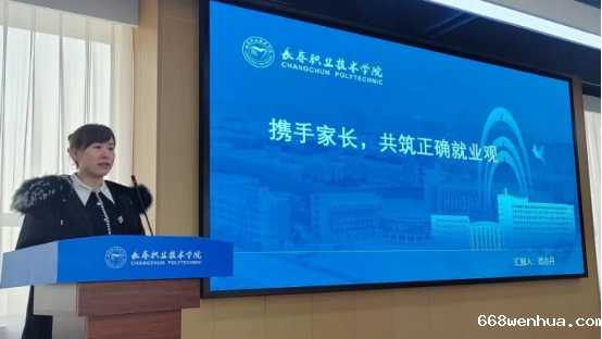 会议第三项:汽车服务系主任范志丹从“家长如何助力学生更好地规划职业,成功就业”做交流分享。