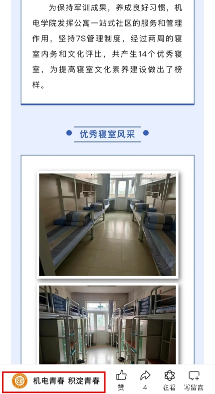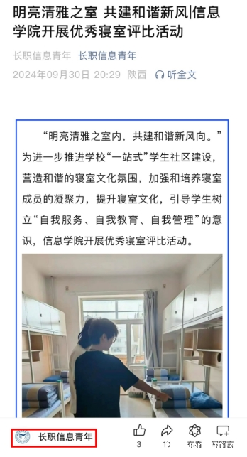 为发挥学生公寓育人功效,深化“一站式”学生社区综合管理模式,使新生同学更加快速的融入大学寝室生活,培养学生养成良好的生活习惯,合理安排作息时间,落细落实“7S”内容,延续军训验收成果,各学院结合新生入学教育系列活动及新生军训内务卫生评比等活动,组织新生全方位进行了寝室文化建设评比活动,下面让我们来一起见证一下萌新们的第一次成功蜕变吧: