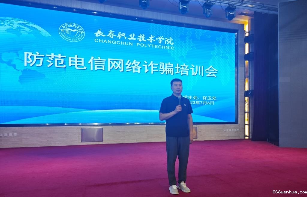 为做好校园安全稳定工作,进一步遏制校园电信诈骗案件发生,引导同学们远离电信诈骗陷阱,切实保护学生财产安全,增强学生识别诈骗防范的本领,我校保卫处、学生处于7月5日、6日联合举办为期两天的电信防诈安全宣传培训活动,特别邀请长春市公安局经开分局刑警大队聂硕警官作以“紧绷防范之弦、远离诈骗之害”为主题的培训讲座。学生处、二级学院学生科长以及全体在校生参加了此次培训,活动由学生处学生思想教育科科长杨君鹏主持。